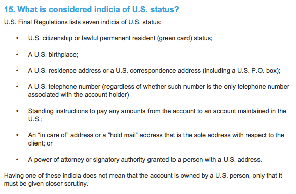 如果你只擁有其中一項標(biāo)記,并不意味著你的賬戶符合“美國人身份”,但會提醒國稅局必須給予更仔細的審查。
